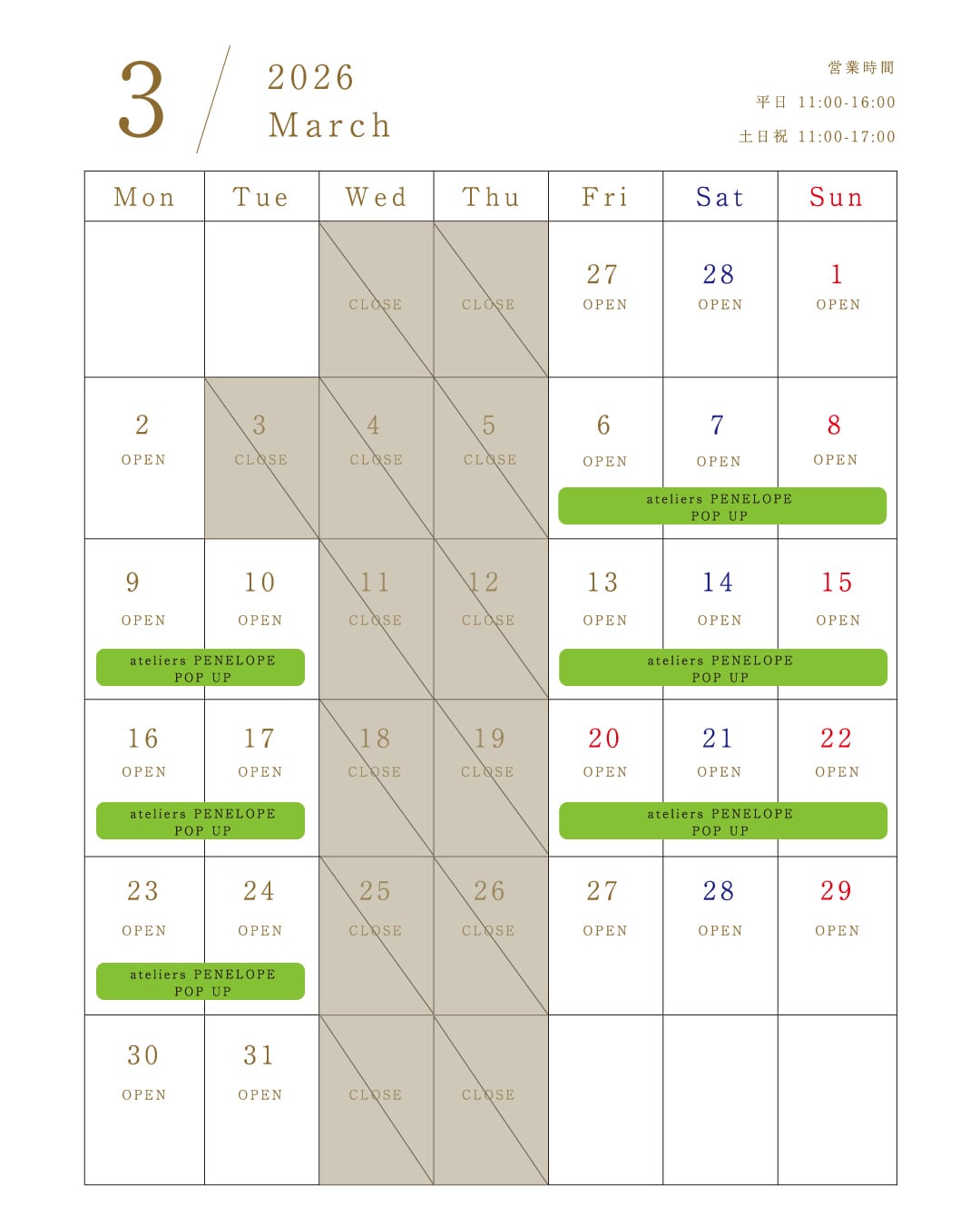 土日祝 11:00~17:00